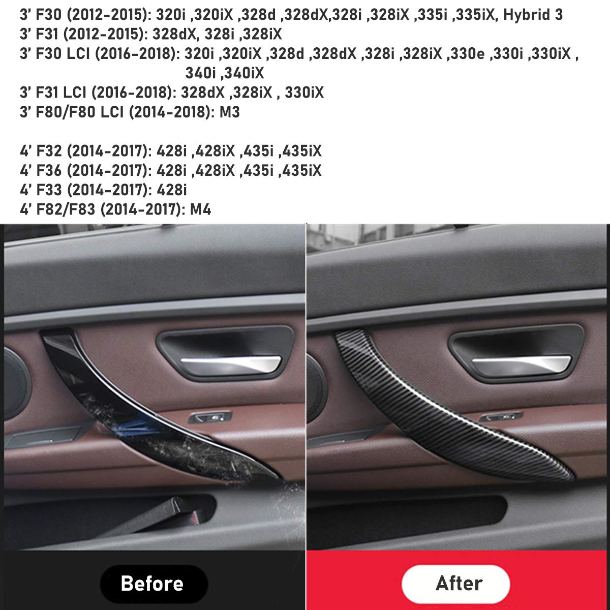 【Compatible Vehicles】:ABS Carbon Fiber Door Handle Compatible with BMW 3 Series: 320,328,330,335,M3 2012-2018 (F30/F31/F34/F80) and Compatible with BMW 4 Series: 428, 435,M4 2014-2017(F32/F33/F36/F82/F83).Fit for Driver Side or Left Rear Door.Please check the specific model in the following description. NOT REAL CARBON FIBER.