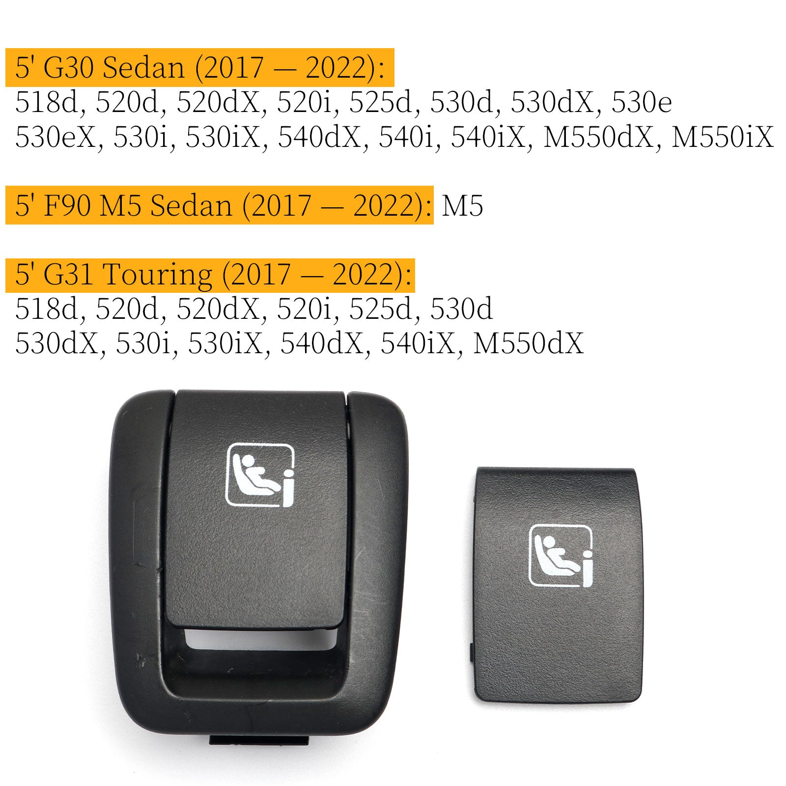 【Perfect Match]】:Child Seat Mounting Cover is compatible with BMW 5' G30 Sedan (2017 - 2022), 5' F90 M5 Sedan (2017 - 2022), 5' G31 Touring (2017 - 2022). Please carefully review the model details below to determine which child seat anchorage cover model you need.