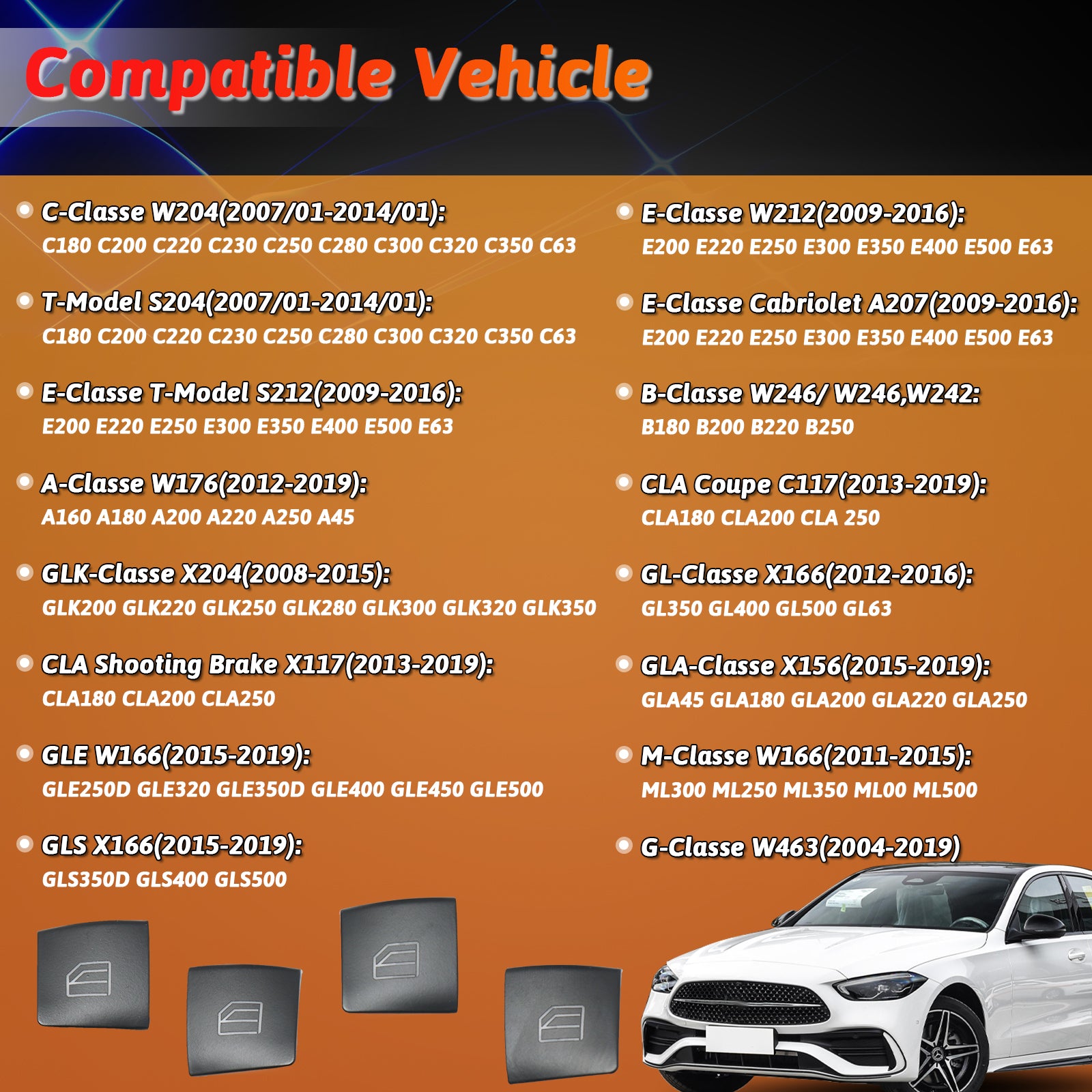 - đăUpgrade-Decoration and ProtectionăThe original buttons are easy scratched after long-term use.Moonlinks Window Switch Button Decorative Sticker can protect the original buttons perfectly.Compatible with Mercedes-Benz Class C W204 2008-2015,Class E W212 2010-2015,CLA Class C117 2013-2019 window button stickers that keep your vehicle unique and eye-catching,Instant upgrade the appearance.Freshen up the interior for your C Class Window Button with this chrome-plating window button stickers.