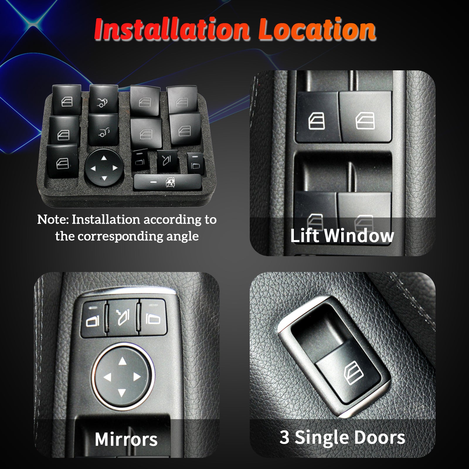 - đăFitmentăMoonlinks 14PCS Window Switch Button Trim Cover Replacement compatible with Mercedes Benz A B C E G GLA CLA GLK GL ML GLE-Class W204 W212 W246 W166 X166 X204 Tesla Modle X S.Please make sure the style of Window Switch button in your original car as the picture before you order.If you no sure whether the model is suitable or not,you can take a picture and contact us,we will help you see if it is suitable.If you have any problems with purchase process,please contact us.