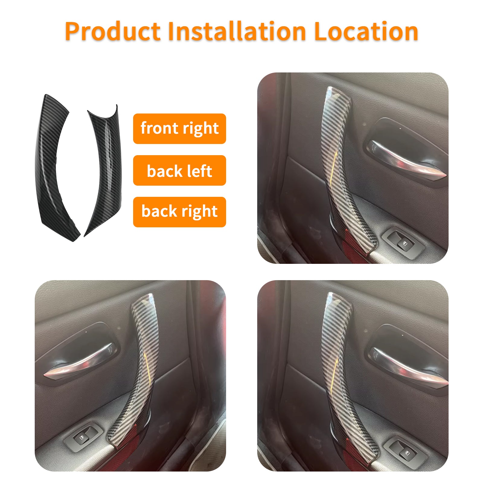 Package Includes: The package contains 3 door handle covers, one for the front right, rear left and right side door handles. Before purchasing, please check the product pictures or description to ensure compatibility with your vehicle model.