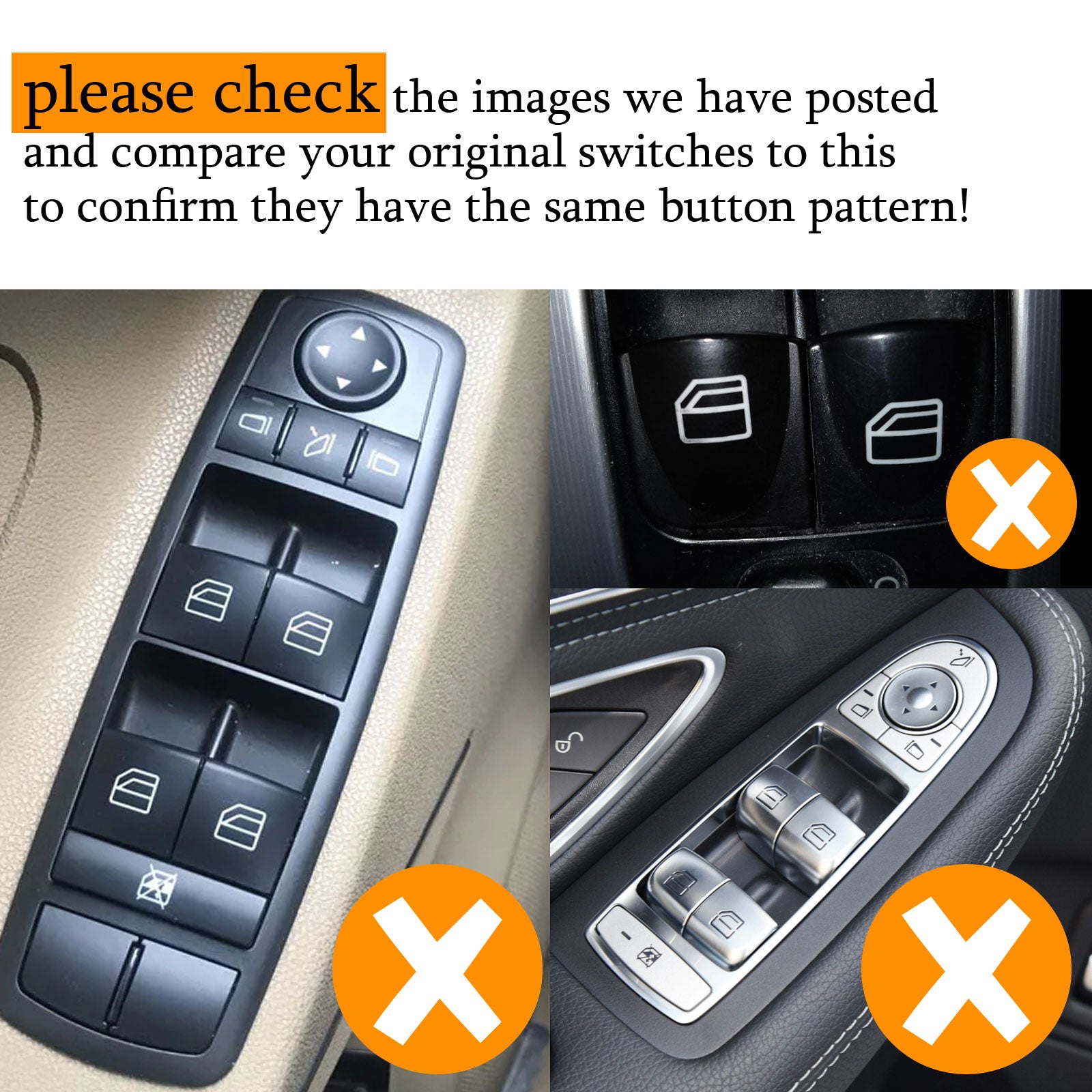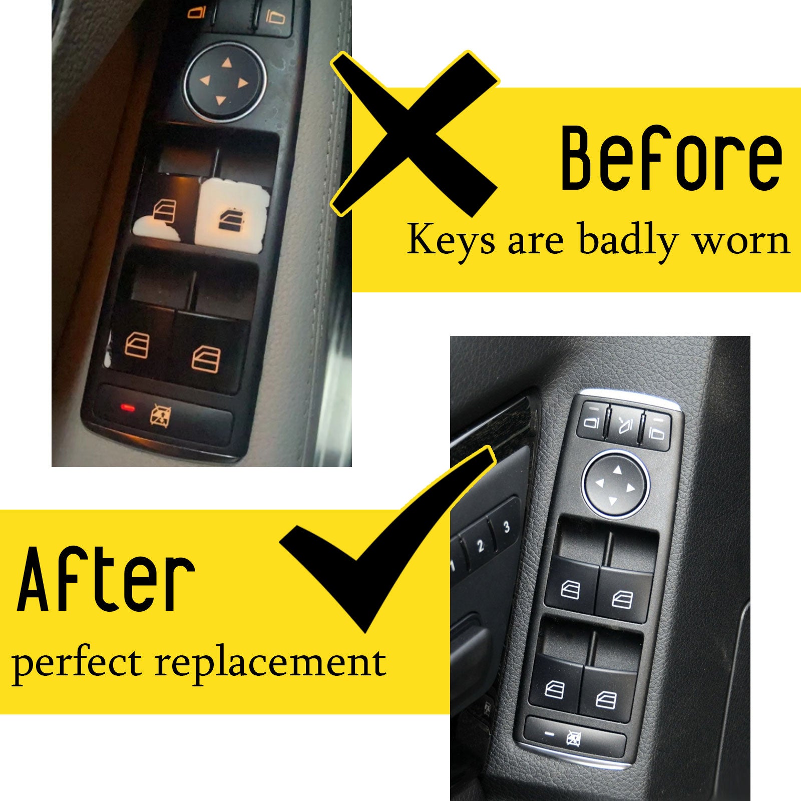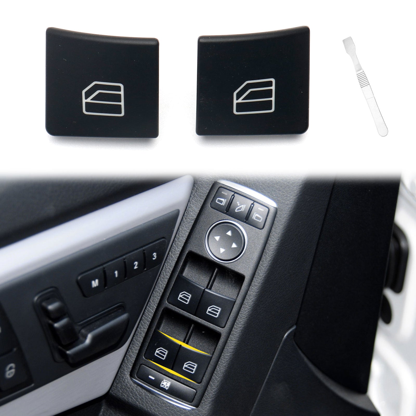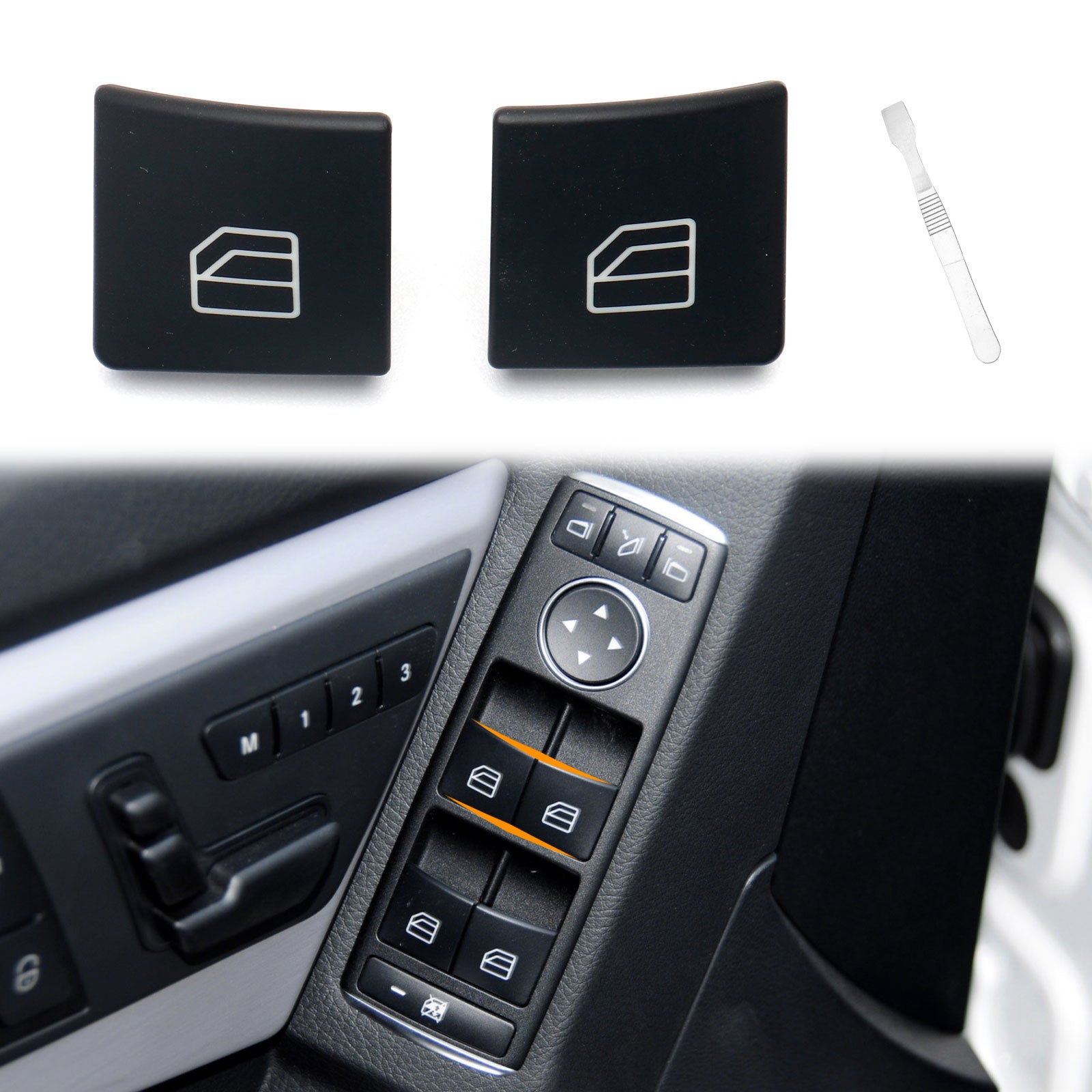 These Window Switch Button Covers fit Mercedes-Benz C, E, GLK, ML/GL, A, B, CLA, GL, GLA, GLE, GLS, M-Class (2007-2019). Made from original molds for a perfect fit. Part number A2049055402.