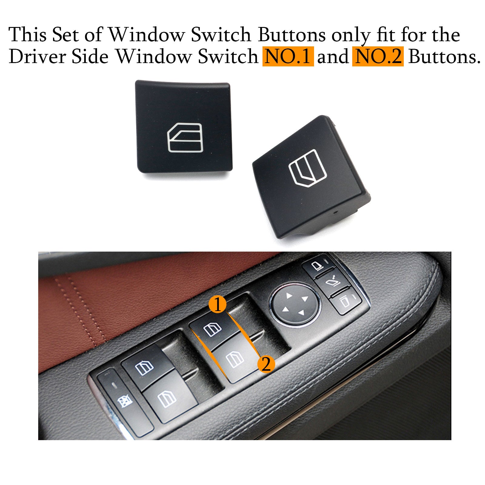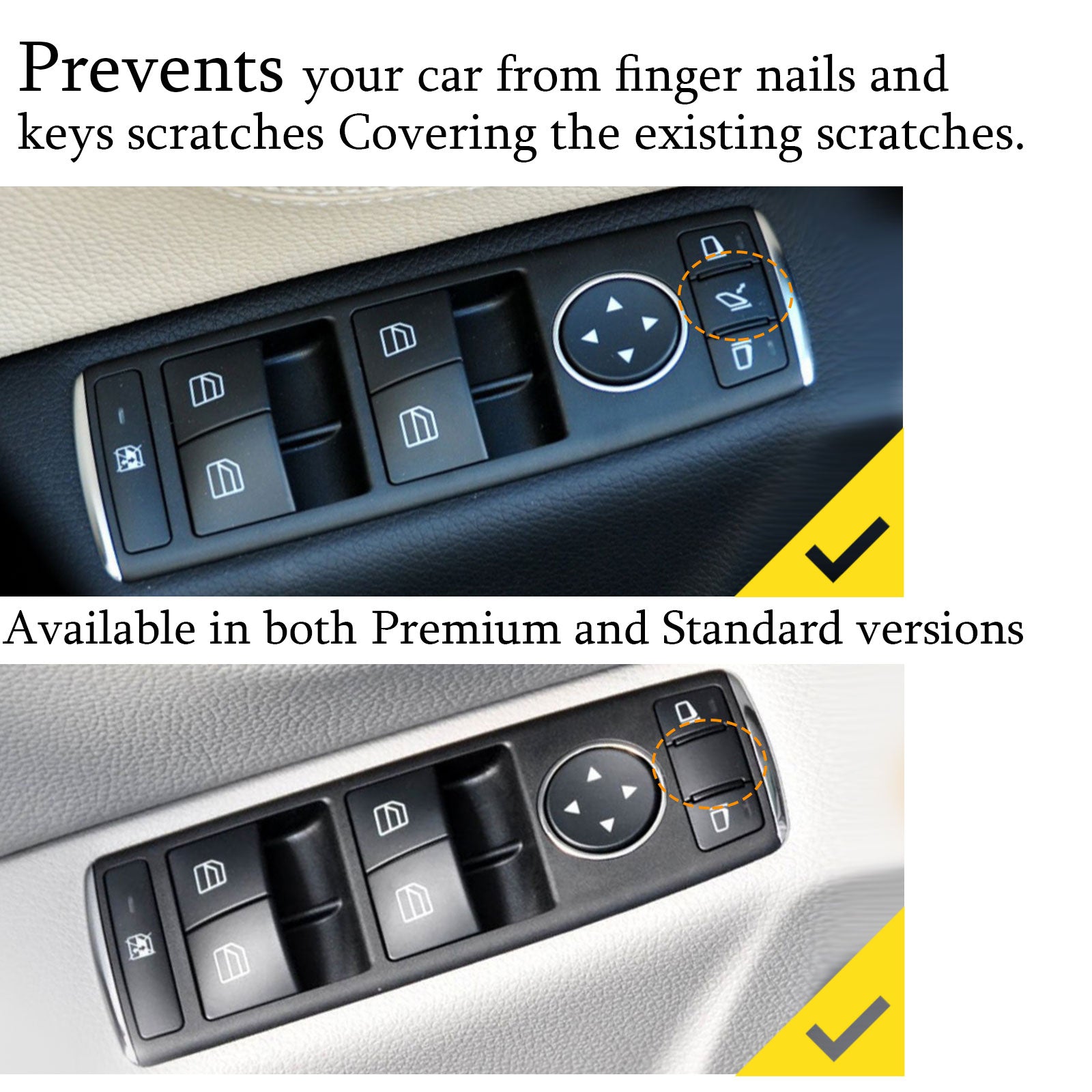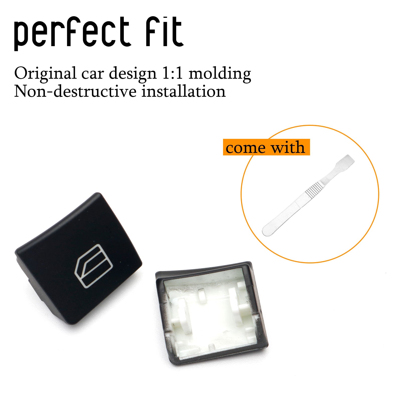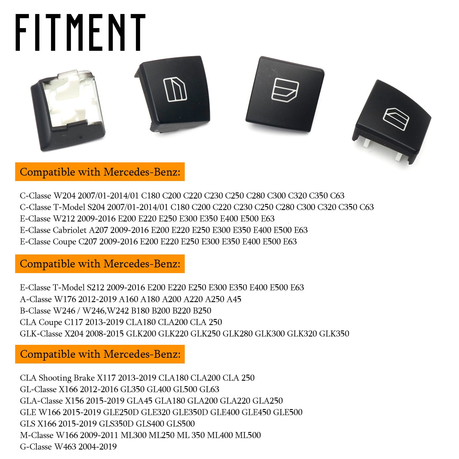 These Window Switch Button Covers fit Mercedes-Benz C, E, GLK, ML/GL, A, B, CLA, GL, GLA, GLE, GLS, M-Class (2007-2019). Made from original molds for a perfect fit. Part number A2049055402.
