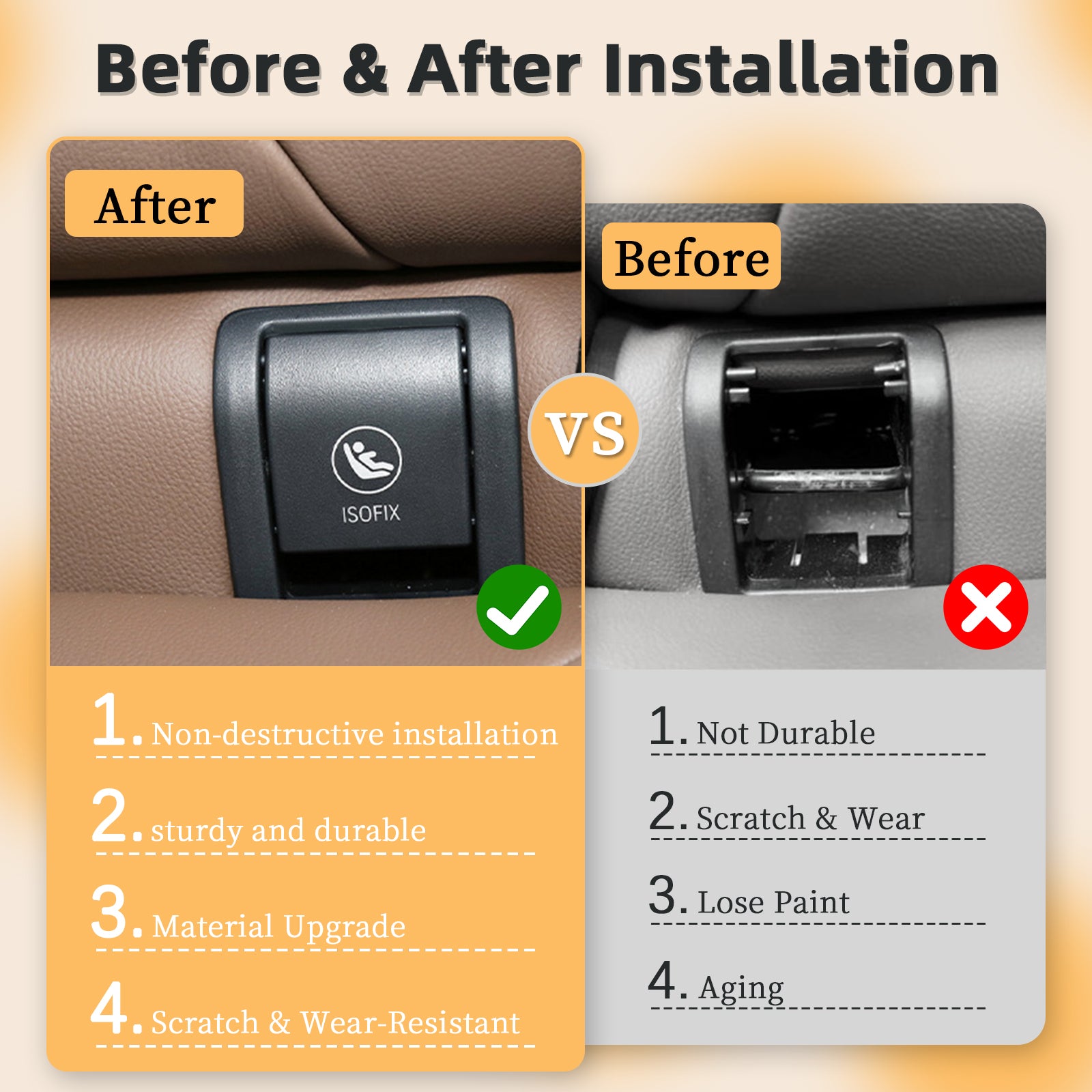 - Premium Material: This Rear Child Safety Seat Anchor Isofix Cover is made from good-quality ABS+PC material, offering a smooth surface, durability, scratch resistance, and crack prevention for long-lasting performance. If you have any questions, feel free to message us.